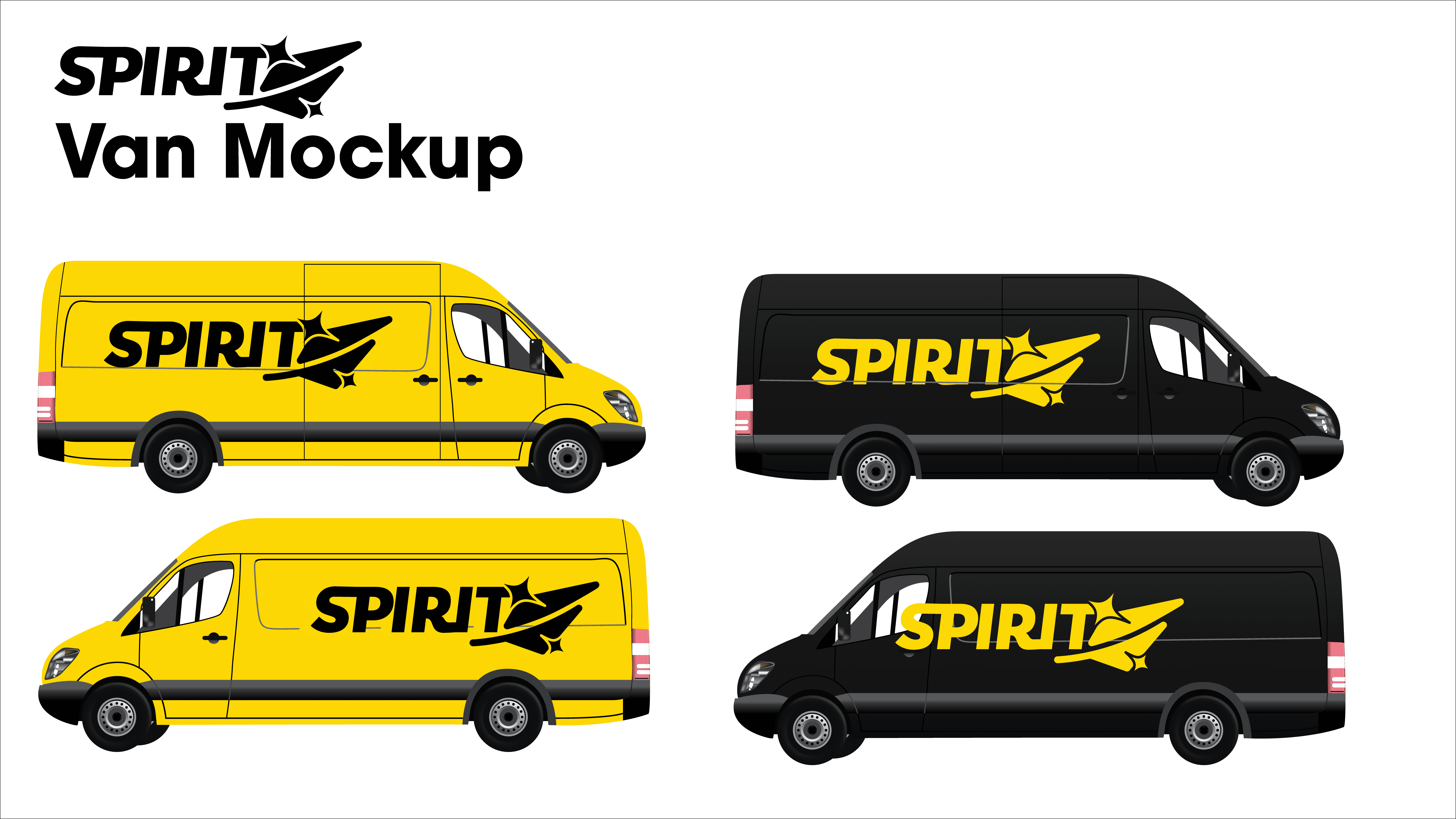 For the vehicle mockups, I wanted to show how the new Spirit branding works on a larger scale. The goal was to keep the designs bold, readable, and instantly recognizable from a distance.